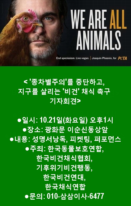'' Ͽ а 븦 ߴϰ, ΰ ΰ ϸ ȭӰ ''(VEGAN) ä õ ˱Ѵ.